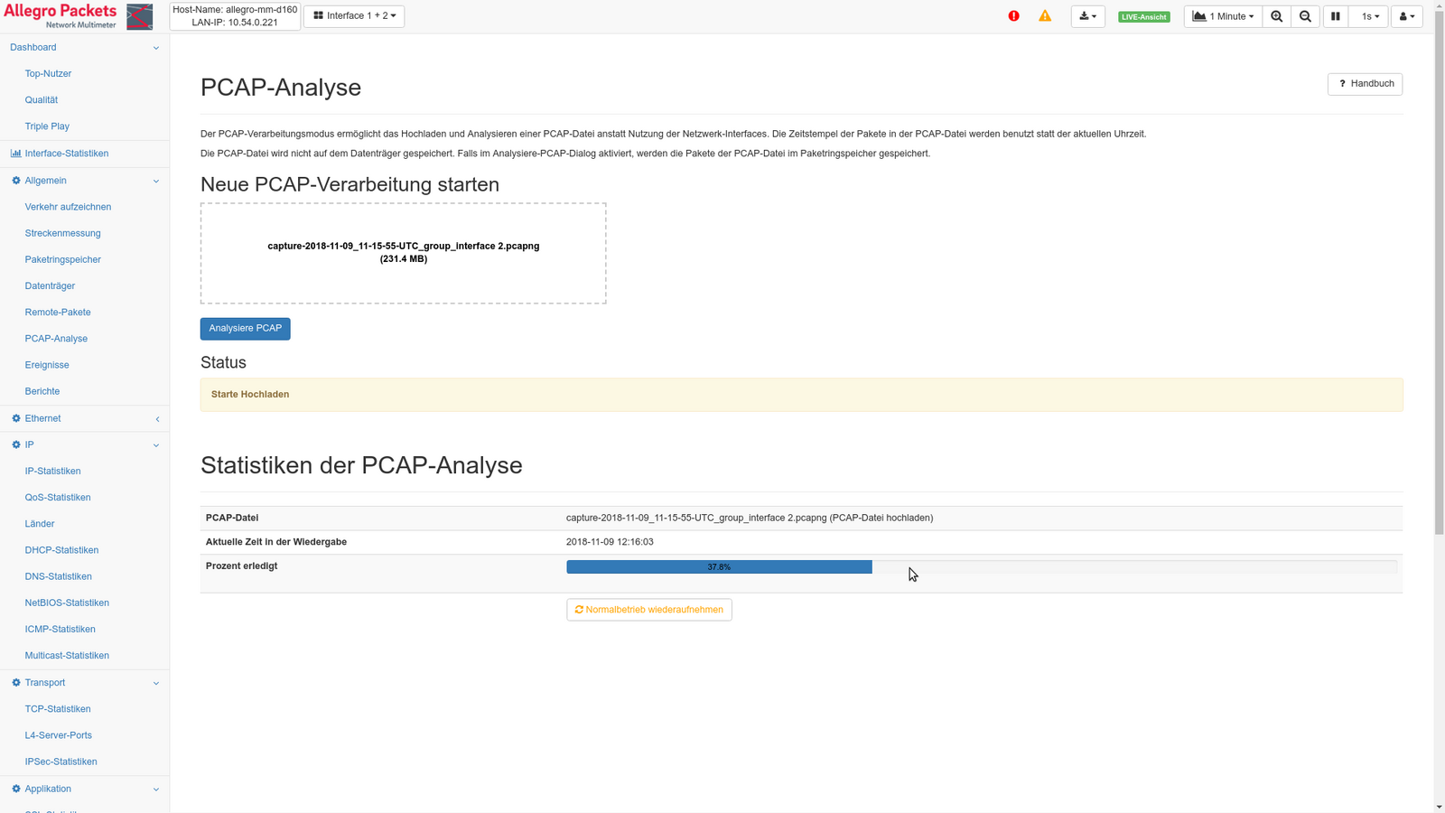Vorhandene Pcap-Dateien zum Filtern auf das Allegro-Tool aufspielen
