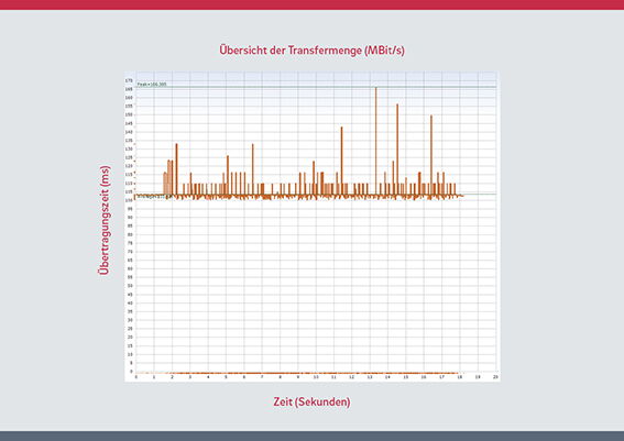 Nutzt die betreffende Funktion die gesamte verfügbare Bandbreite? Diese Frage ist nicht immer leicht zu beantworten. Der einfachste Weg zur Visualisierung der verfügbaren Bandbreiten besteht darin, den Datendurchsatz in jeder Richtung grafisch darzustellen, wobei der unidirektionale Durchsatz mit der gemessenen Bandbreite des betreffenden Links verglichen wird. Kann die oben gestellte Frage mit „Ja“ beantwortet werden, dann ist der Betriebsengpass bei der verfügbaren Bandbreite zu suchen. Lautet die Antwort „Nein“, dann gibt es andere Einschränkungen, die die Performance begrenzen. Dies bedeutet jedoch nicht, dass die Bandbreite keine signifikante Einschränkung darstellt, sondern lediglich, dass es andere Faktoren gibt, die verhindern, dass die Operation die Bandbreitenbegrenzung erreicht.