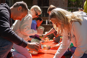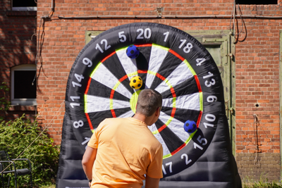 We competed in four teams across several disciplines: sifting pasta, kneading dough, and precision challenges like frisbee golf and soccer darts. Our highlight was the pasta water parcour. For this, we had to wear a pair of nasty goggles that simulated complete drunkenness. Equipped like this, our task was to balance pasta water in a ladle, navigating over and around obstacles, to still have enough water left to cook with at the end. It may sound funny, but it was a serious challenge. Our brainpower was also put to the test: pasta quizzes and riddles had our heads boiling until they were al dente. The winners were presented with a packet of pasta, as is only right.