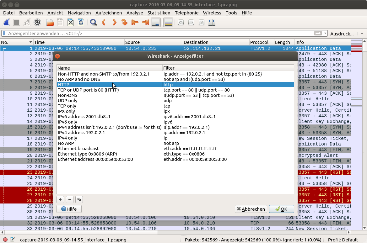 The Wireshark manual contains much more information about the filters integrated in Wireshark.