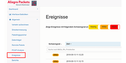 Certain network events are automatically analysed by the Allegro Network Multimeter and warnings are sent by email if network errors occur. Different quality parameters can be acti ...