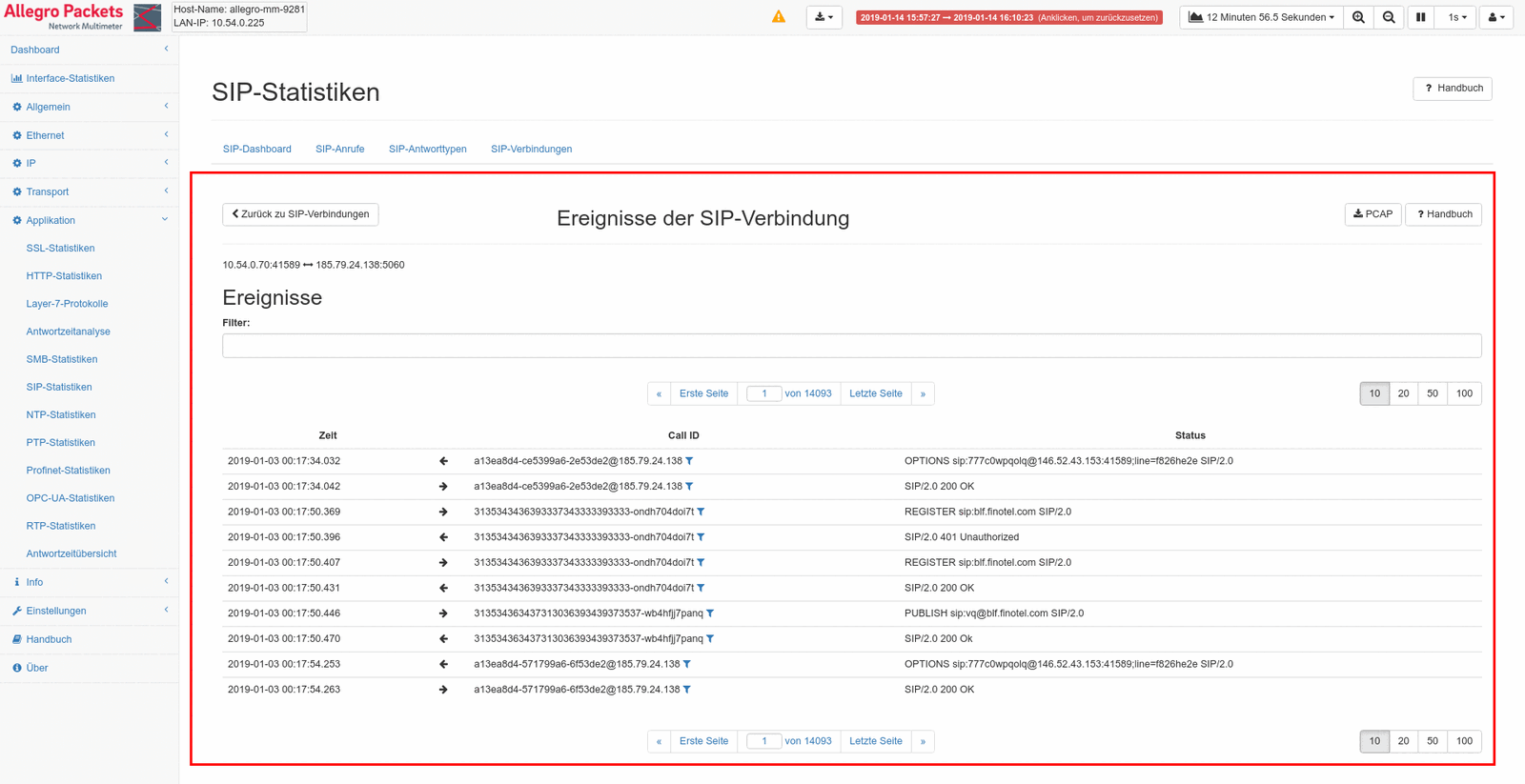 The Allegro Network Multimeter has integrated analysis for both SIP and correlated RTP connections. This allows the exact sequence of server communication to be tracked in real-time, even during individual SIP calls. For example, it is possible to check whether the authentication was carried out on the SIP server and was successful.