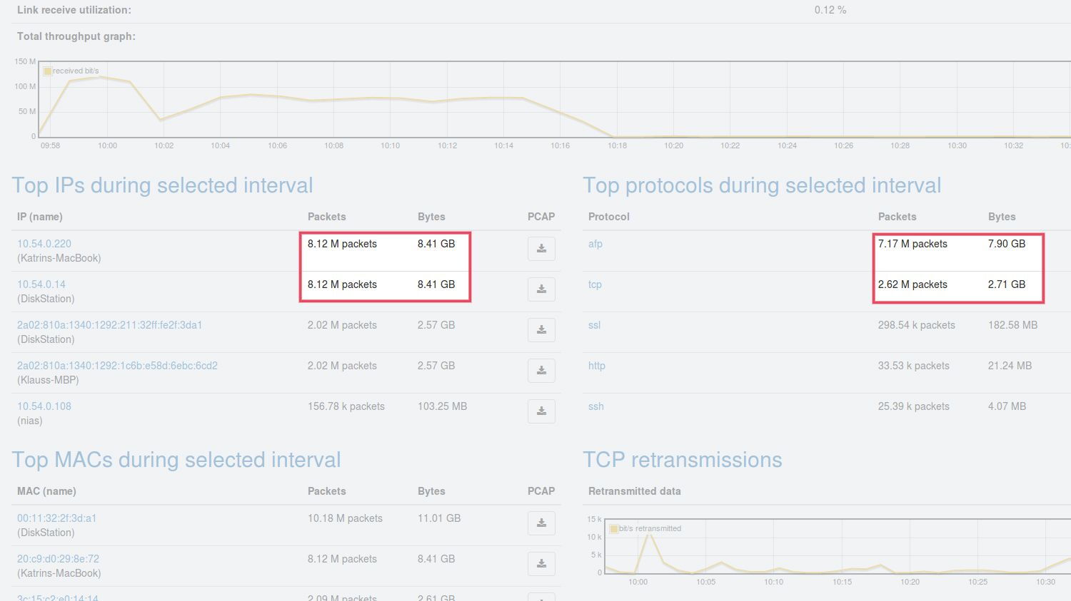 You now therefore know that one user caused an inordinate amount of traffic and consumed high bandwidth during the period concerned by uploading or downloading data and so probably triggered the problem. If the user isn’t aware of this, an inadvertent time machine backup setting in the MacBook identified in this case may be responsible.