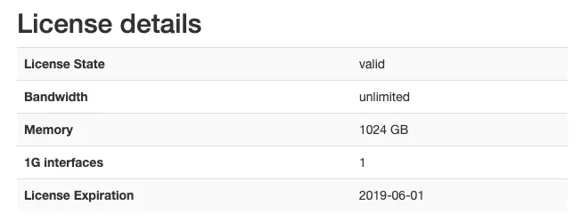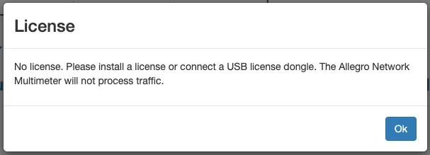 Navigate to Settings → License upload and send the system serial number to testlicense@allegro-packets.com. Allegro Packets will issue a test License for you that can be installed by the Upload new License button. Once the test License is applied, it will show you the License details similar to this output: