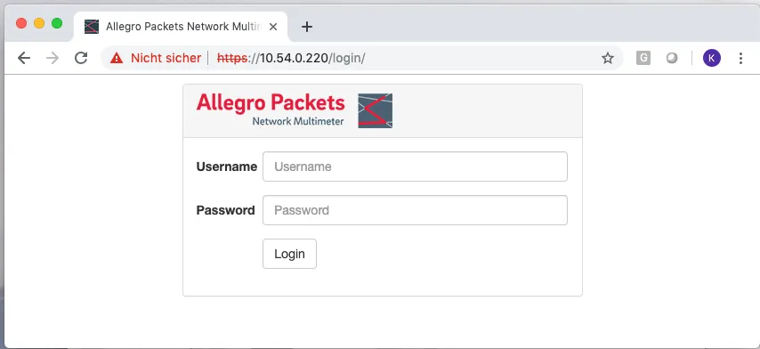 You can now connect to the IP address with your browser, in our case https://10.54.0.220/. The browser will show a certificate warning. Accept it to access the login screen.
