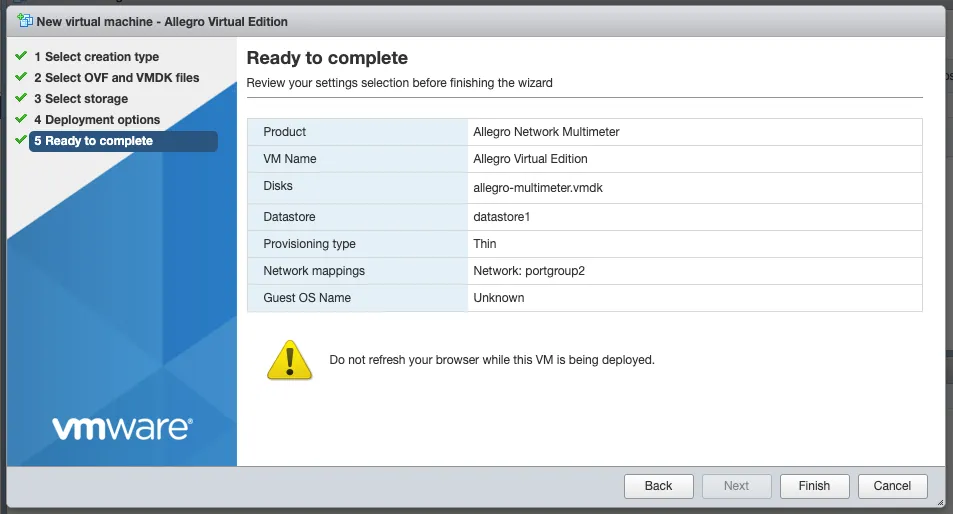 This guide describes how the Allegro Network Multimeter Virtual Edition can be set up with VMware ESXi.