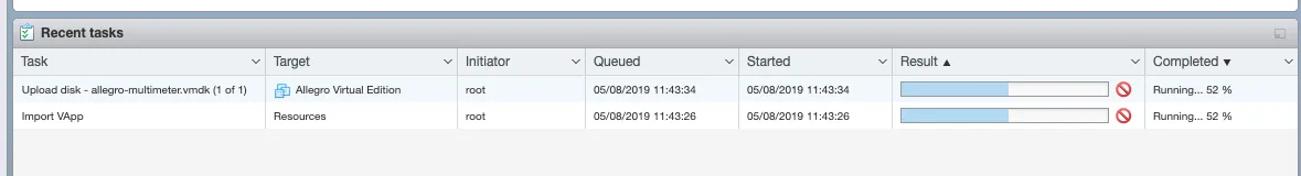 The upload and import of the Allegro Virtual Edition will start. Please be patient until it is finished.