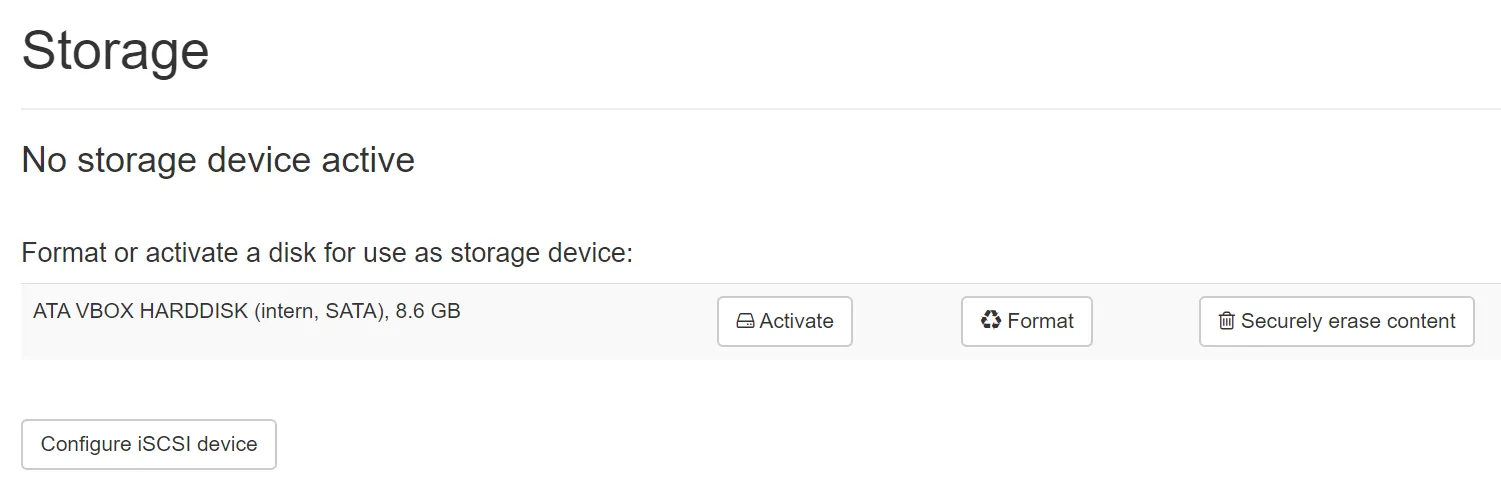 Here an example of 1 attached/configured disk: