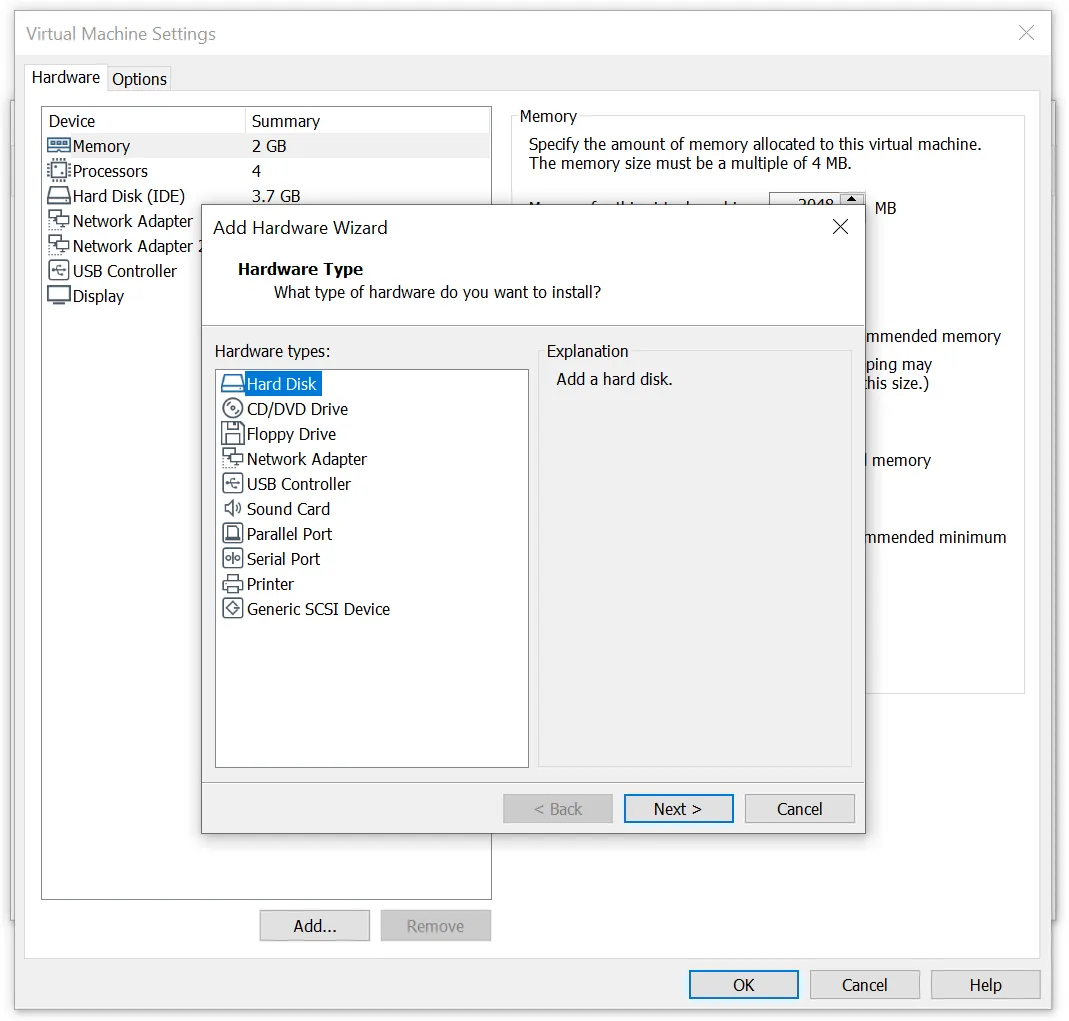 When powered off, edit the settings of the Allegro Virtual Edition in the VMware Workstation and add click the Add… button.