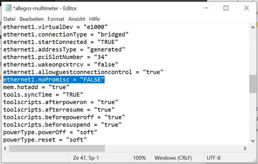 Enable the promiscuous mode for the second port if you would like to analyze all incoming packets. As of now, this configuration cannot be done in the VMware Workstation GUI and it does not work for all physical interfaces.