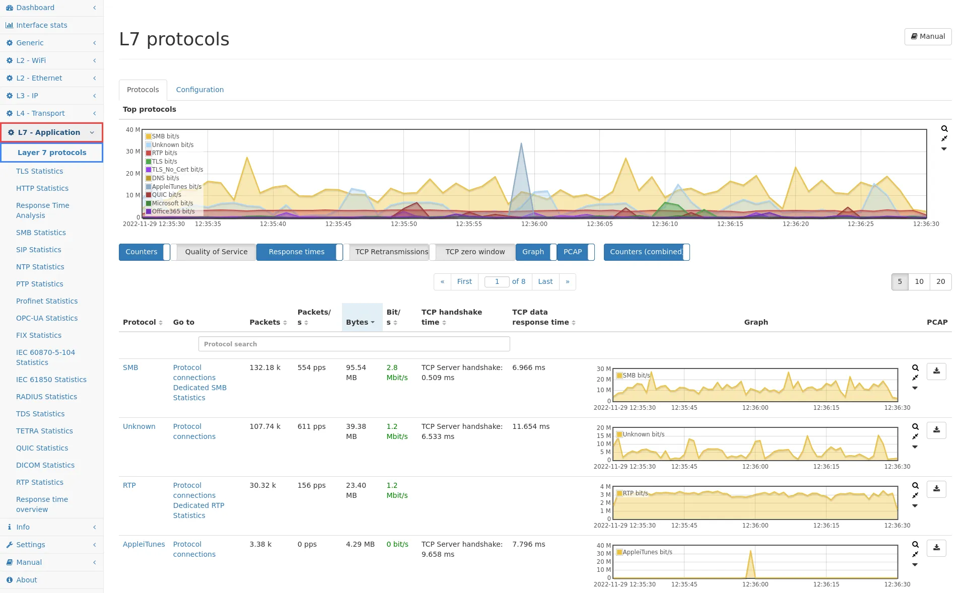 Section titled “Statistics for protocol”These detail view pages show statistics for a specific protocol.
