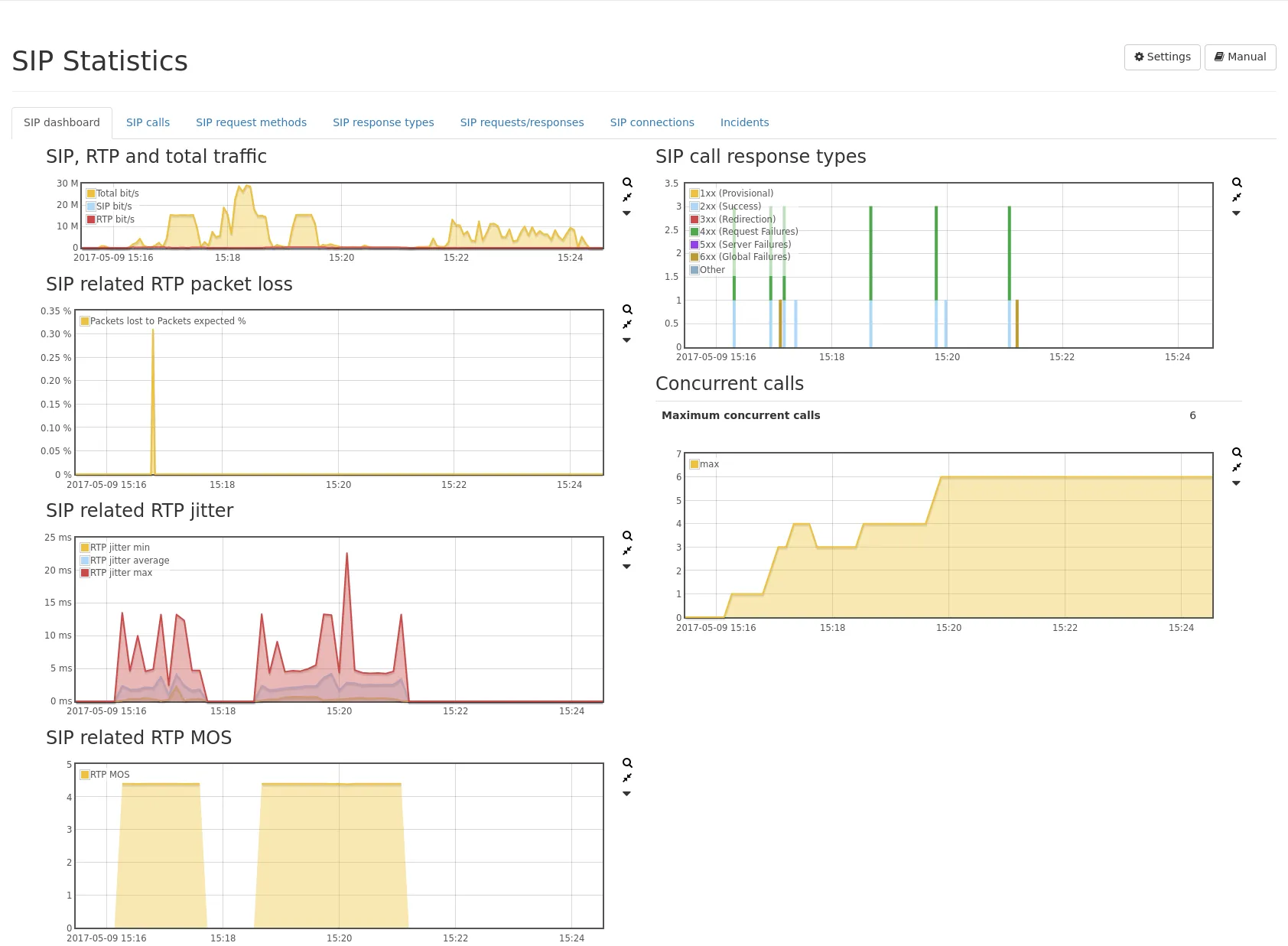 - SIP traffic, RTP traffic as well as total traffic.