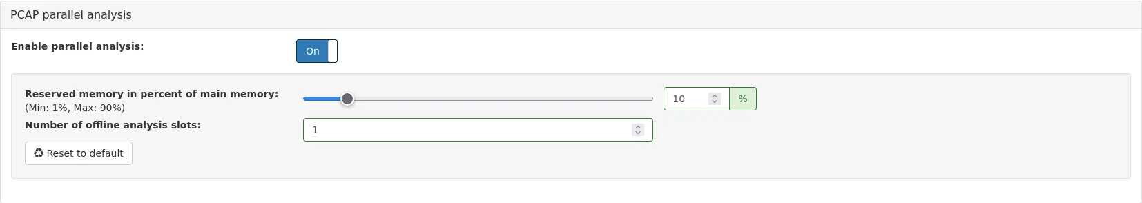 Section titled “How can I configure parallel packet processing?”You can enable parallel packet processing at Settings → Global settings → PCAP parallel analysis. This mode has 3 options: