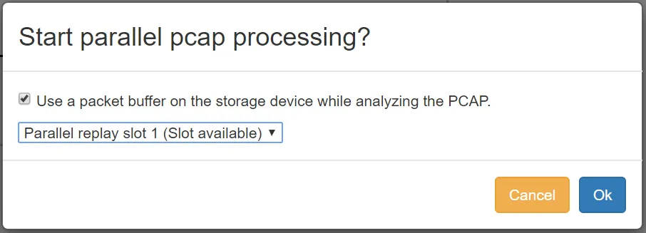 Section titled “Process traffic capture from remote device”When parallel packet processing is enabled, you can use the configured analysis slots to analyse traffic captures from remote devices. See the Parallel remote packets section for more details.