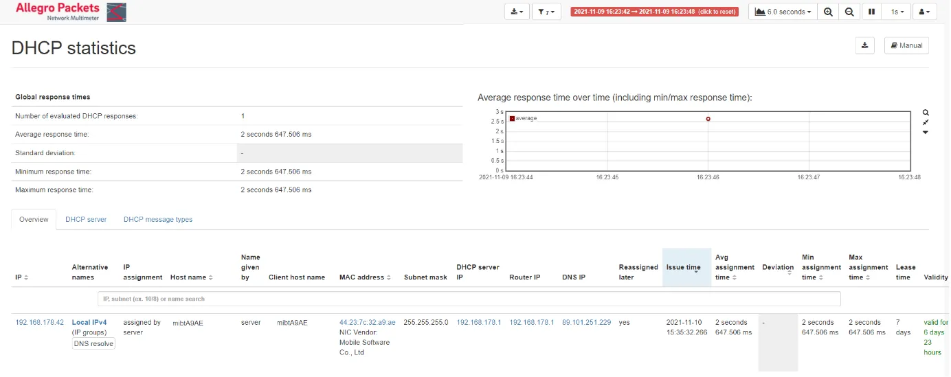 Because you already zoomed into a specific time frame on the graph, this page will now only show you the client - DHCP-server relations, that happened during the time frame that you selected in the graph.
