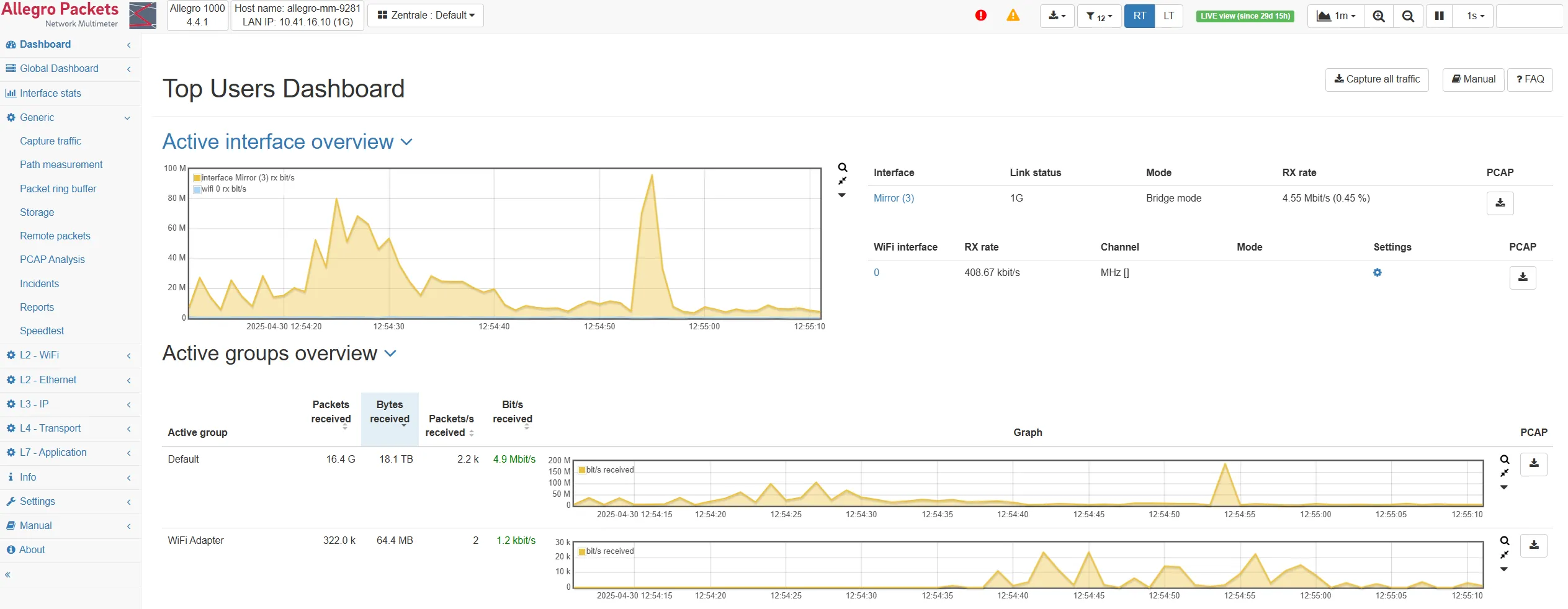 How can you use the Allegro Network Multimeter to quickly and easily examine the load on a network? Let’s take a practical example: multiple users complain that their network connection is sometimes very slow. For example: an event between 11am and 12pm.