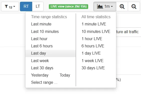 Section titled “Time Selection”Next select a time view in the upper right corner, which is a longer timeframe than the interval to be examined: